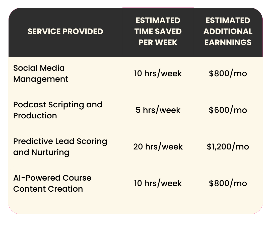 We won't overwhelm you with a million options! Instead, we focus on a select set of the most impactful AI tools and provide clear guidance on how to use them to skyrocket your results while saving you money.